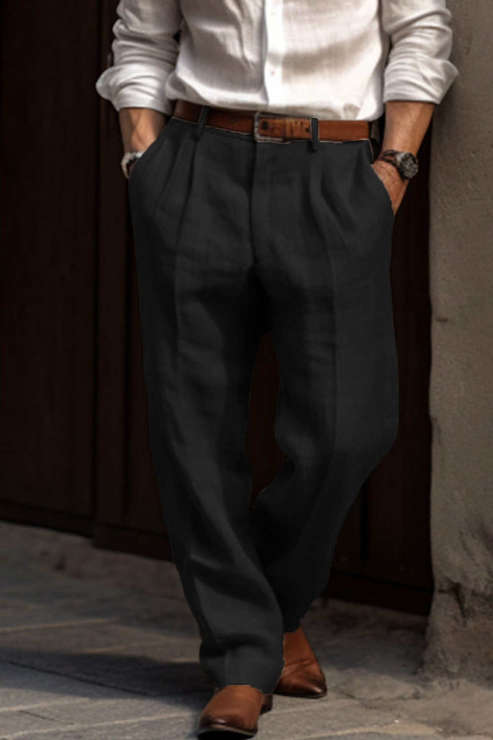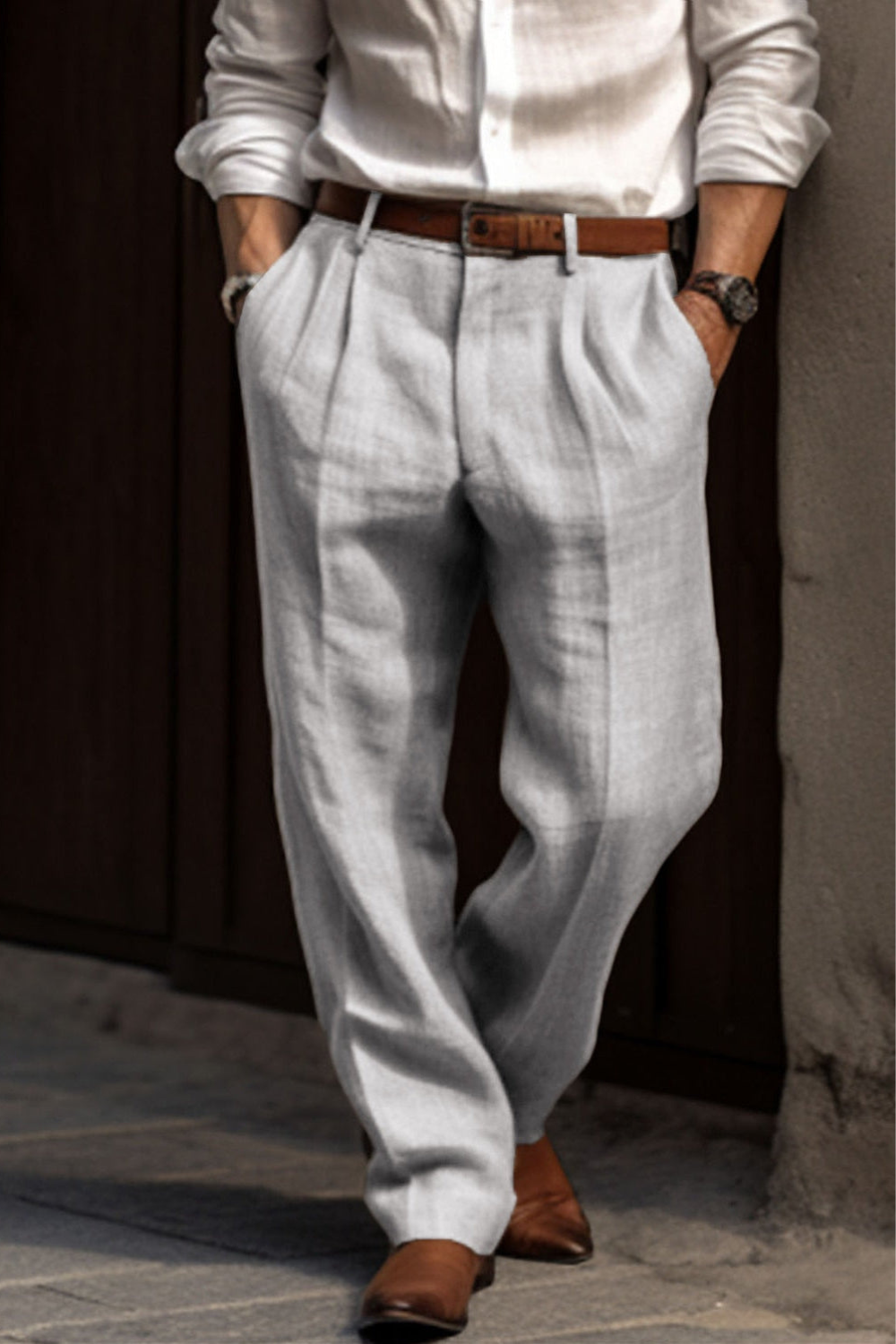 Dessa plisserade raka byxor för män har en balanserad silhuett som passar året runt. Med en strukturerad form, justerbar midja och funktionella detaljer erbjuder de ett mångsidigt alternativ för både avslappnade och formella sammanhang. Deras neutrala utseende gör dem till ett praktiskt tillskott i en varierad garderob.